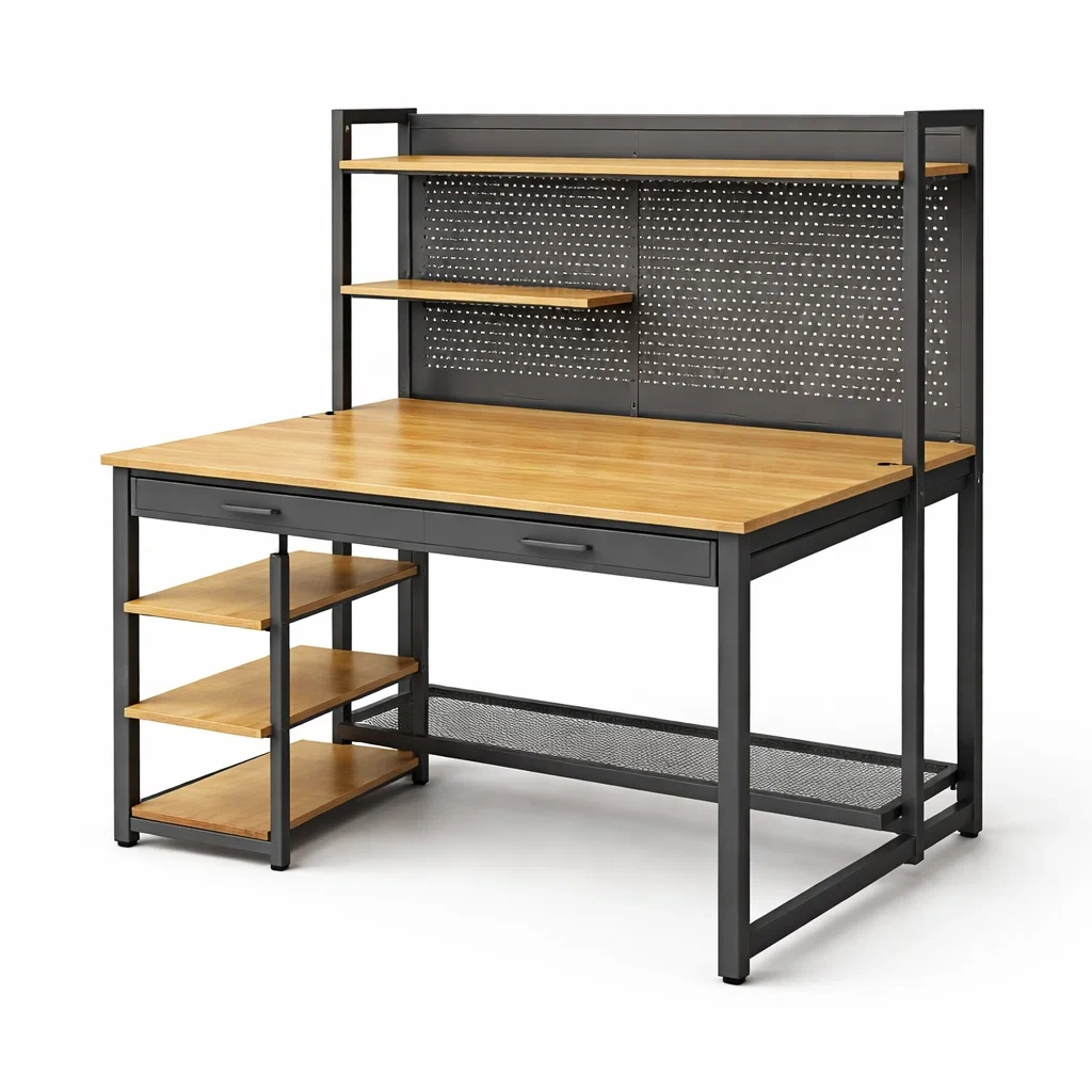 Materiale del prodotto: La scrivania è realizzata in legno di bambù e metallo verniciato a polvere.