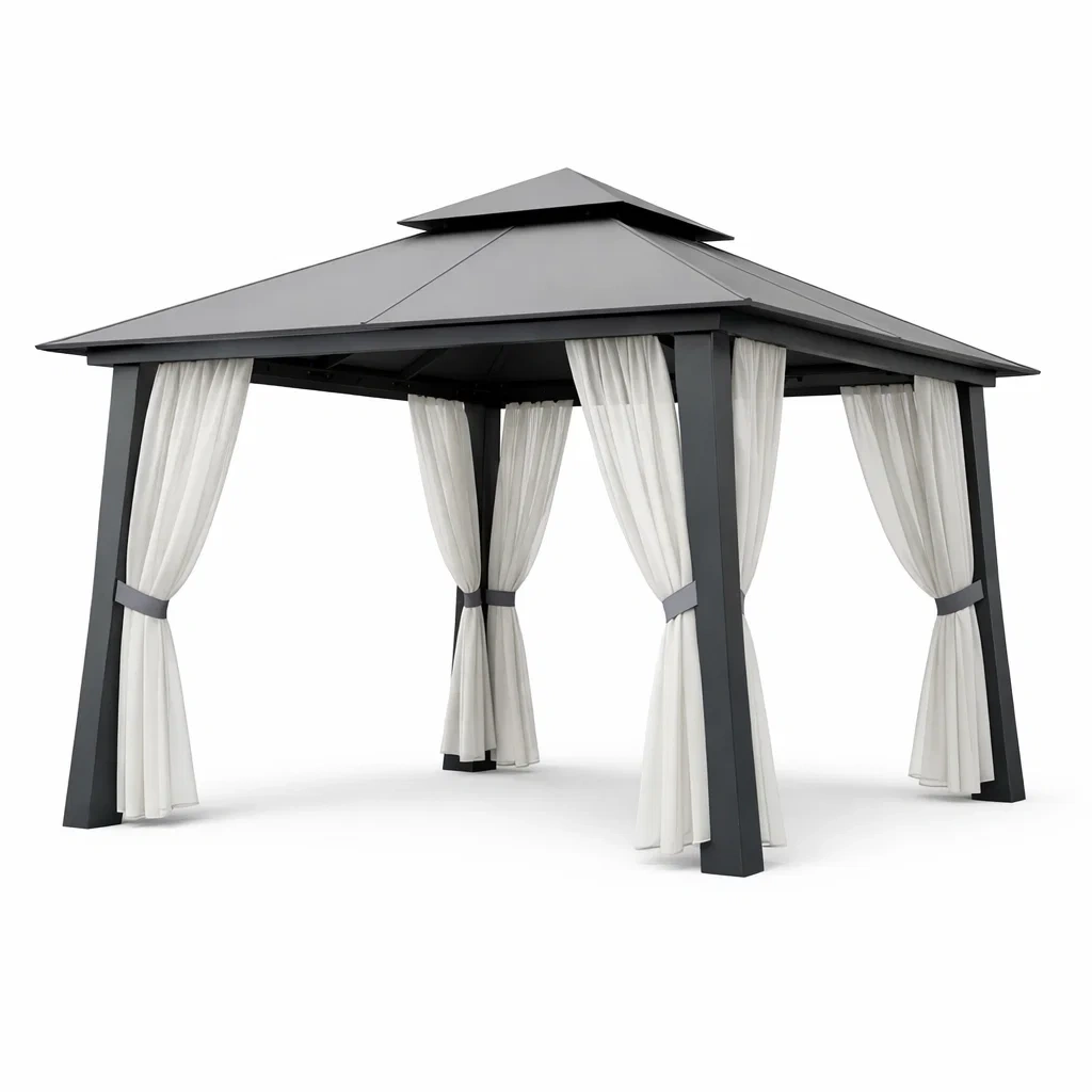 Metallo Gazebo con Tetto a Doppio Strato e Tende Bianche