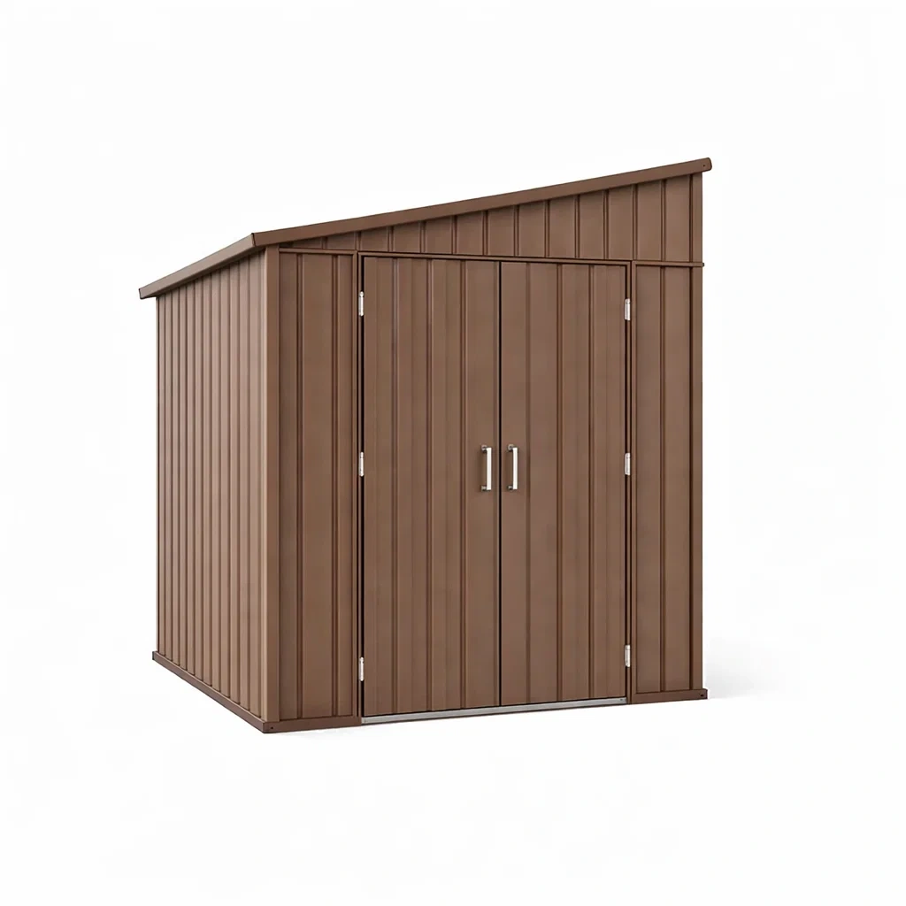 Porta doppia con maniglie in metallo, tetto inclinato per drenaggio acqua